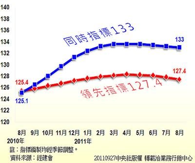 經建會指出,代表未來景氣的指標─6個月平滑年變動率為0.2%,較7月的1.1%,減少0.9個百分點,連續21個月下滑。